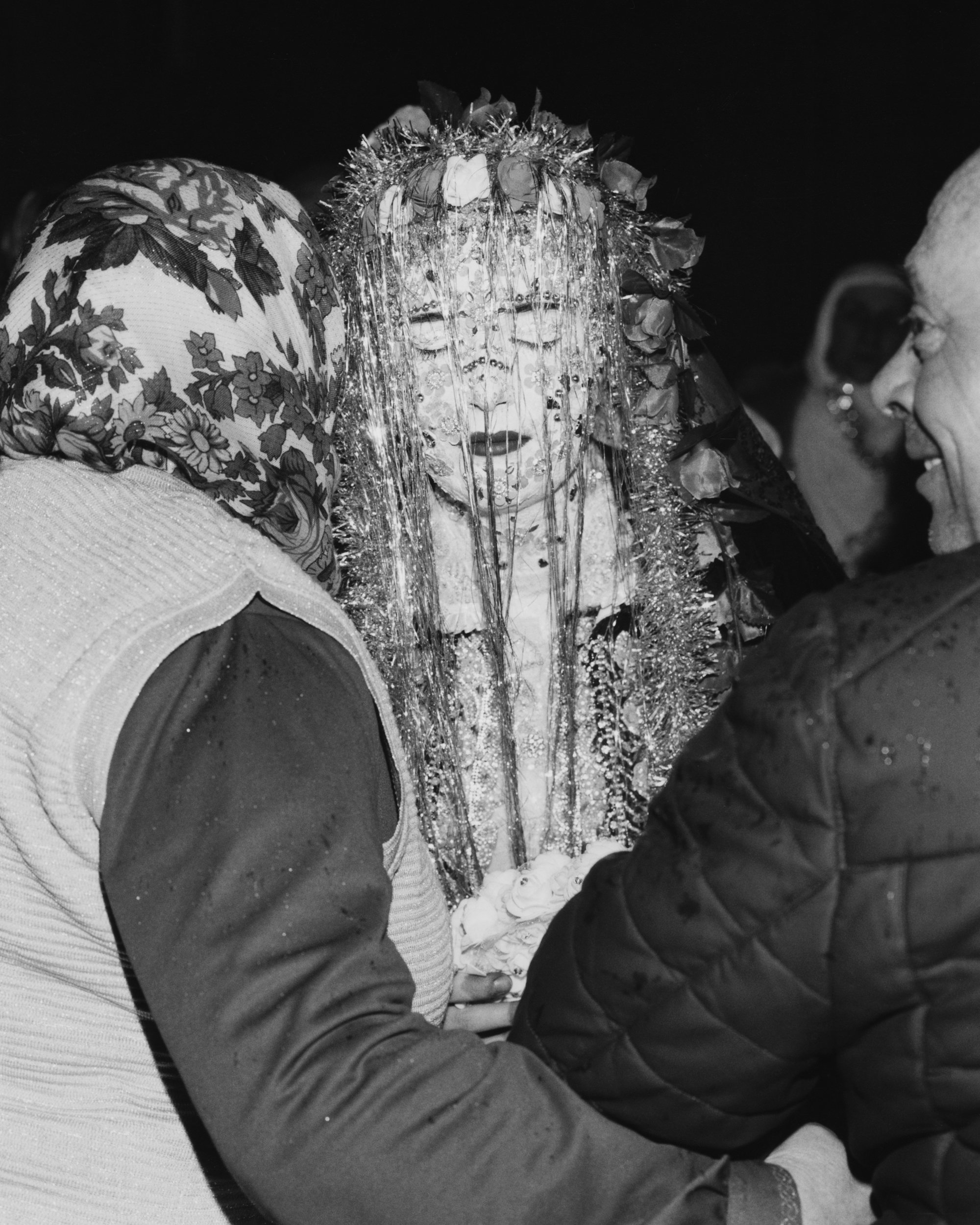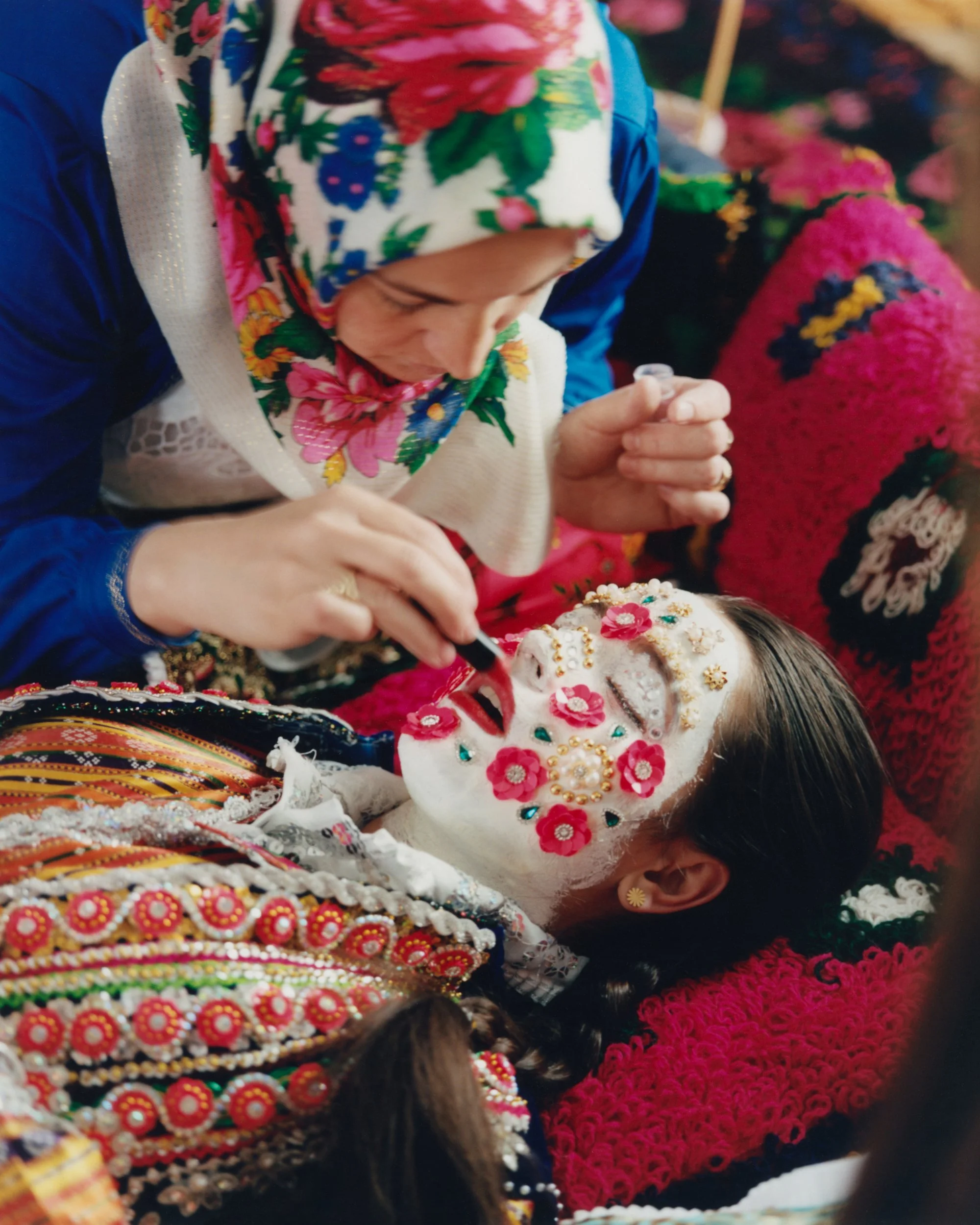 Pomak brides wear elaborate makeup for their Gelina ceremony, in turn warding off the evil eye, and to symbolise purity and piety. Once ready, the bride is handed a ceremonial mirror to hold. She has one last look through the mirror, then closes her eyes for a procession all the way to her husband’s home. This custom can be seen as a ritualised transformation marking the bride’s liminal transition into marriage. These traditions endure not as fixed relics, but as living practices that intersect with modernity. While the visual language of the ceremonies appears ancient, the traditions themselves are neither static nor isolated from contemporary life.